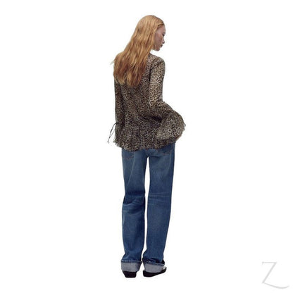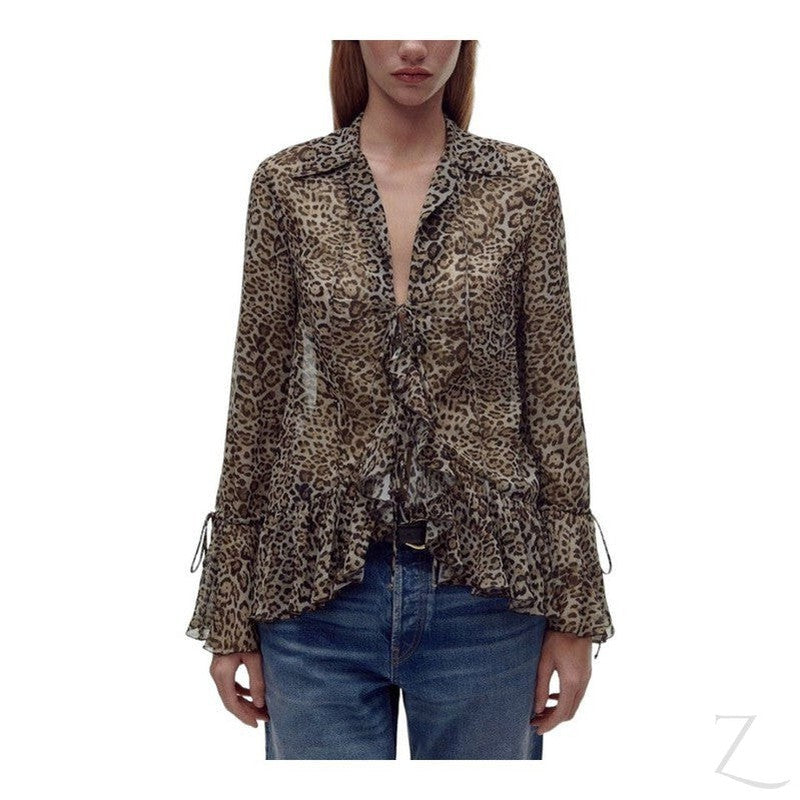 Ladies Sheer Blouse with Raffles | Leopard Print | "Zia"